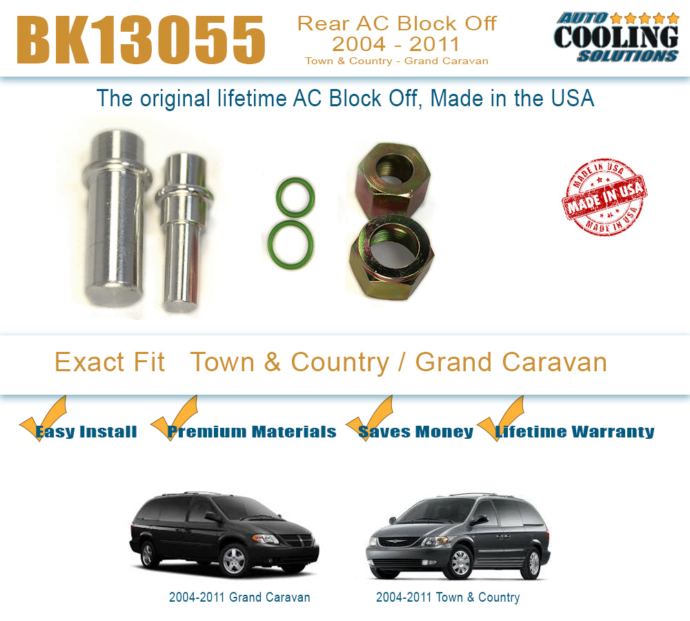 Our rear A/C block off kit allows you to block off the rear A/C lines and restore use of the front ac system. A block off kit is a workable option for some people. If your vehicle isn't used carry others around much, or if you just need a temporary solution that is more affordable than replacing the lines, a Rear AC Block Off Kit could help you "Get Your Cool Back!"