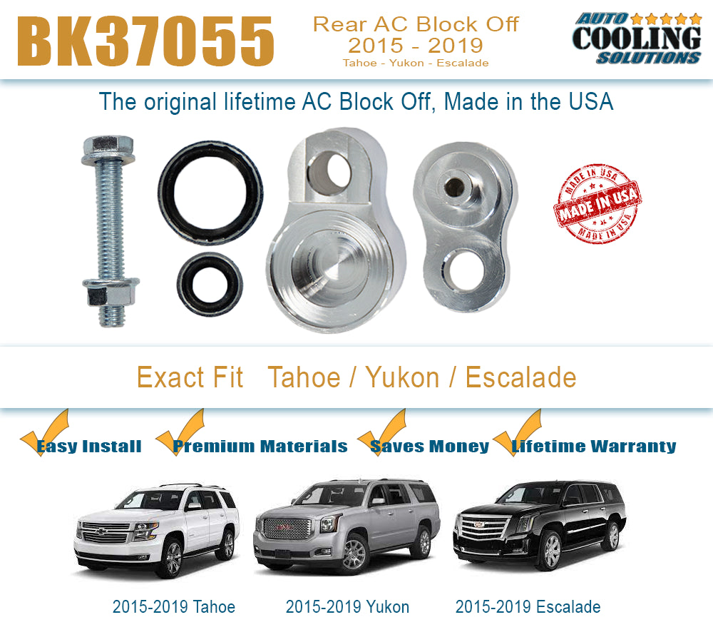 Our rear A/C block off kit allows you to block off the rear A/C lines and restore use of the front ac system. A block off kit is a workable option for some people. If your vehicle isn't used carry others around much, or if you just need a temporary solution that is more affordable than replacing the lines, a Rear AC Block Off Kit could help you "Get Your Cool Back!"