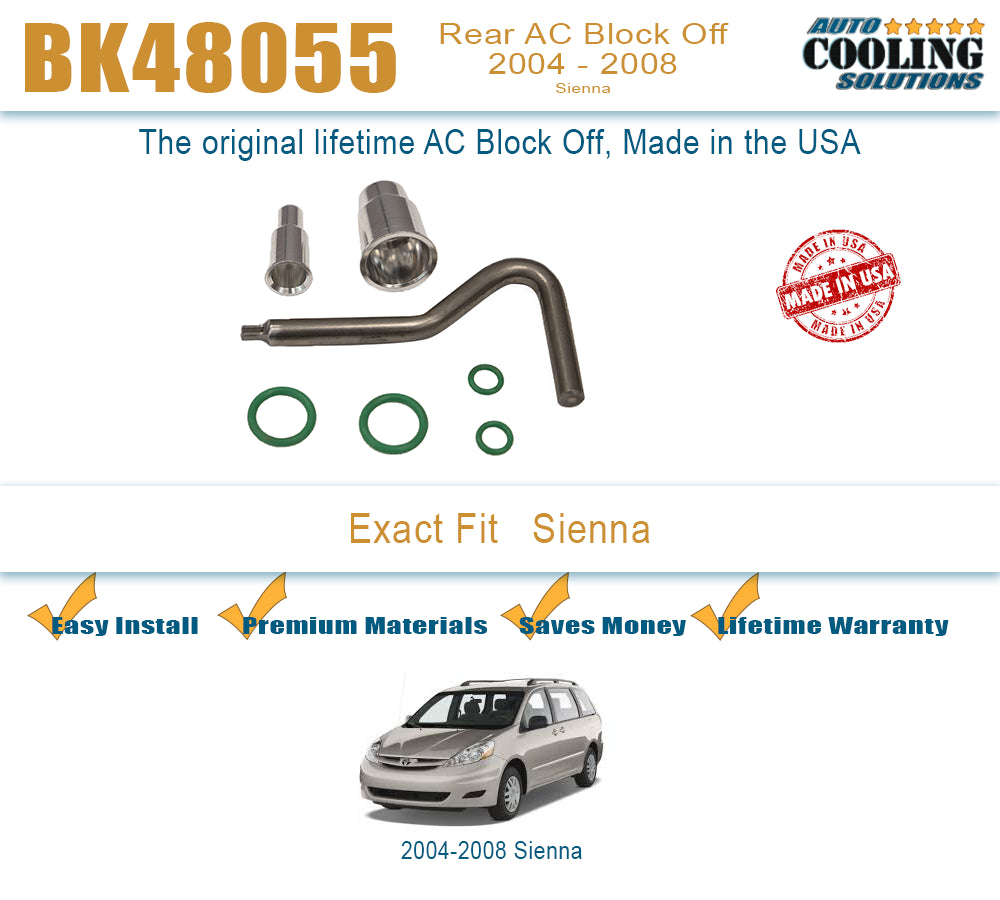 Made in the USA! Aerospace grade aluminum AC fittings. Exceeds OEM quality. Eliminates use of rear ac system. Installation is very easy. No need to remove original lines.