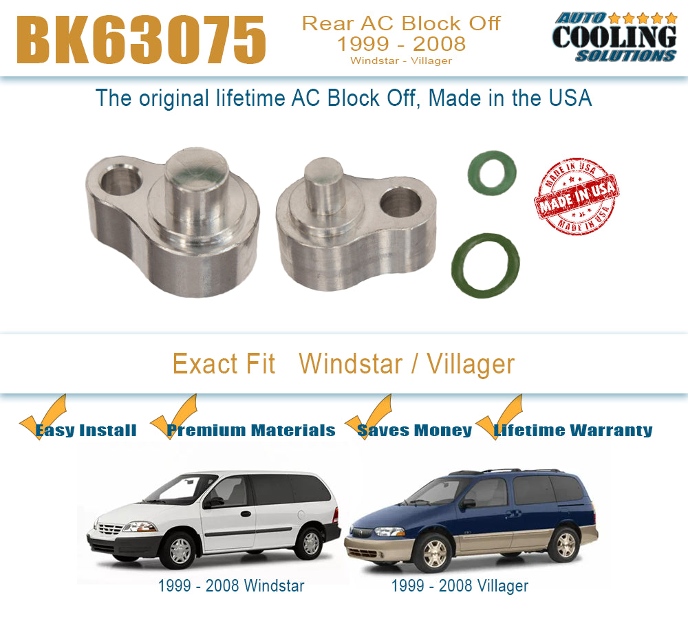 Our rear A/C block off kit allows you to block off the rear A/C lines and restore use of the front ac system. A block off kit is a workable option for some people. If your vehicle isn't used carry others around much, or if you just need a temporary solution that is more affordable than replacing the lines, a Rear AC Block Off Kit could help you "Get Your Cool Back!"